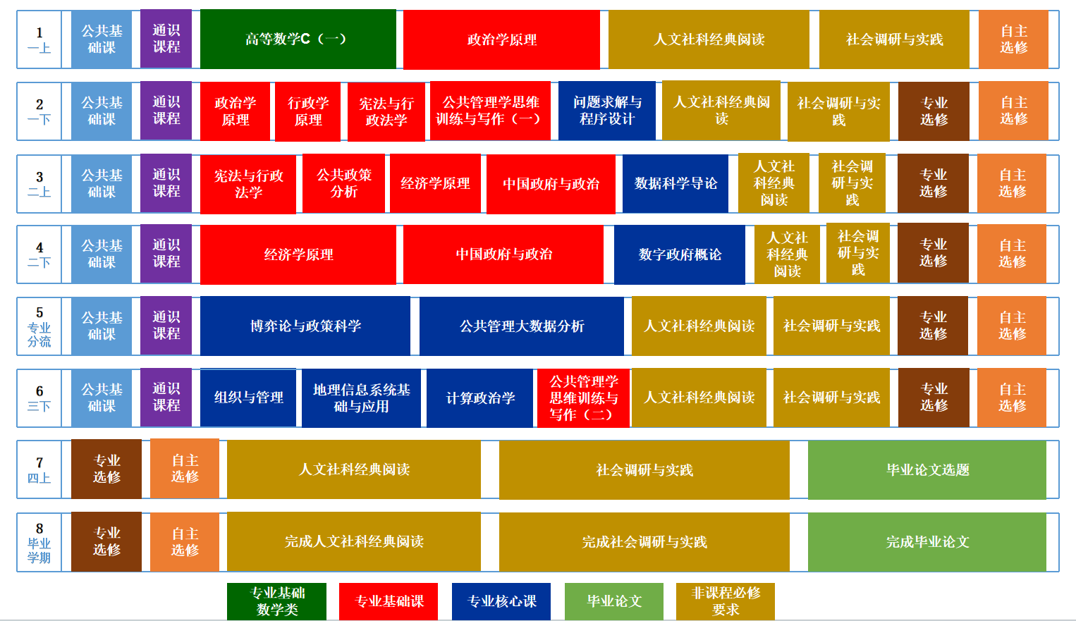 “数字治理”专业开设人工智能与计算思维、数据科学导论、数字社会与治理、数字政府概论、博弈论与政策科学、公共管理大数据分析、计算政治学、地理信息系统等课程。